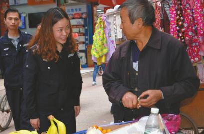 “她只是我们队伍里的一名新兵。”安岳县城管联合执法大队办公室主任肖武说,面对占道经营的小摊贩,这位娇小柔弱的女同志确实有自己的办法,她柔和的态度,让摊贩能够接受,“其实她并不擅长给别人讲道理,但是和摊贩的关系却处得不错”。