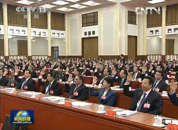 常委步入主席台。