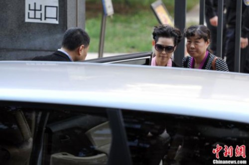 9月26日,北京海淀法院将对李某某等五人强奸一案进行公开宣判。当日上午9时30分公开宣判被告人李某某、王某、魏某某(兄)、张某某、魏某某(弟)强奸一案。被告人李某某犯强奸罪,被判处有期徒刑十年。图为宣判结束后梦鸽面无表情走出海淀法院,乘车离开。中新网记者 金硕 摄