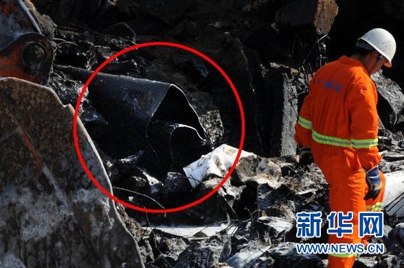11月25日,一名消防人员在断裂点附近勘察(红圈处为断裂的输油管道)。当日,经过多日清理、抽水,引发11·22中石化黄潍输油管线爆燃事故的Φ711MM输油管道疑似漏油点被找到。记者在现场见到,该段管道严重变形且发生扭曲,断口整齐。据中石化方面介绍,输油管道破裂点位于青岛经济技术开发区的秦皇岛路与斋堂岛街交汇处,当时原油泄漏后,部分原油漏入市政排水暗渠,流入海岔。 新华社记者 李紫恒 摄