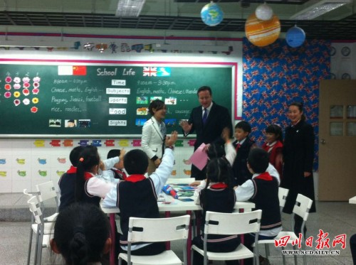 卡梅伦到成都龙江路小学分校参观并和小学生们交流(四川日报网记者 刘淼淼/摄)