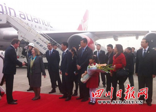 卡梅伦乘机抵达成都双流国际机场(四川日报网记者 刘淼淼/摄)