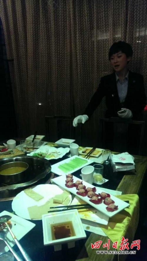 服务员曹静介绍:“他爱吃香菜丸子,点了两盘,此外土豆、白玉菇也吃得比较多。他好像很能吃辣,但觉得牙签牛肉有点麻,全程他只吃红锅,没夹过白锅里的菜。”曹静告诉记者:“他用中文跟我说了谢谢,还说火锅很棒。”6点50分左右卡梅伦在双流机场登上了英航成都直飞伦敦的飞机,结束了半天的访川行程。
