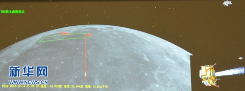 飞控中心大屏幕上正在模拟显示嫦娥三号探测器 石乐乐 摄