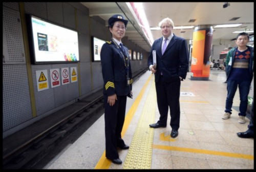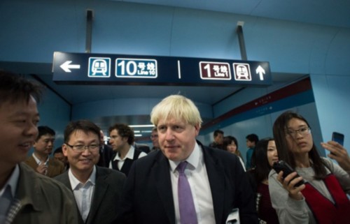 10月15日,北京,伦敦市长鲍里斯·约翰逊体验北京地铁一号线,从西单站乘坐至公主坟站,与交通负责人进行交流,视察中国首都的交通是如何运营的。
