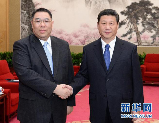 3月18日,中国国家主席习近平在北京中南海会见来京列席第十二届全国人民代表大会第一次会议闭幕式的澳门特别行政区行政长官崔世安。新华社记者刘建生摄