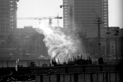 昨天上午10点半左右,消防车大部分已撤离,还有四五辆消防车停在工地。11点半左右,起火点再次冒起白烟,消防员又折回现场扑救。据工人介绍,起火点是二号风道的转弯处,建造完成以后主要放置通风设备。大火熏黑了墙壁,风道上方架设的部分钢筋已弯曲变形。工地工人介绍,附近的钢筋可能都需要更换。自称负责该项目的工作人员李先生表示,具体的善后工作还需现场处理完毕才能进一步开展。
