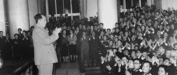 1957年,毛泽东在莫斯科大学对留苏学生演讲。