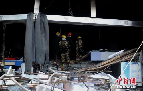 12月28日,四川泸州商场天然气泄漏爆燃事故调查工作全面开展,事发现场的道路交通已恢复,但受事故影响的附近天然气还未恢复。据悉,28日上午,商场1层地下出现微弱的复燃迹象,消防官兵发现及时进行了处置。另外,商场2楼以及平台下方的部分楼板已出现坍塌,平台地面也有许多裂缝,部分连接处的地方已经隆起。目前,相关专家已进入现场展开事故调查,并对经历了大火后大楼进行安全鉴定,燃气管理部门也开始对管道以及泄漏点展开调查和现场勘查。图为调查人员深入商场内部调查。刘忠俊 摄