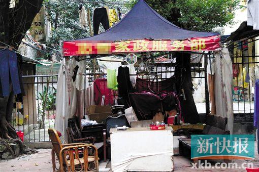 除了看“人”,还要看“公司”。新快报记者在越秀区共和路采访时,看见一个院子里搭了一个棚,这就是一家家政公司的经营场所了。老板已经70多岁,他说自 己就住在旁边的屋子,还进屋拿出营业执照给记者看。营业执照是真的,但在如此小作坊能否找到好保姆,就值得打个问号了。