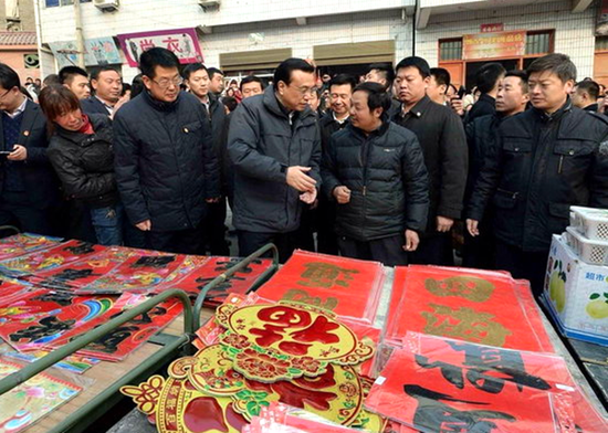 2014年1月,李克强到陕西省安康市旬阳小河镇集贸市场考察。新华社记者李涛摄