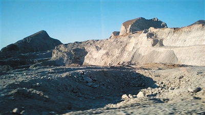 检测点再往北,道路两侧的山岭上闪烁着星星点点灯光,挖掘机正在用杵子一下下地钻山,“哐当、哐当”之声不绝于耳。三五下后,大片石料沿着山体倾泻而下。