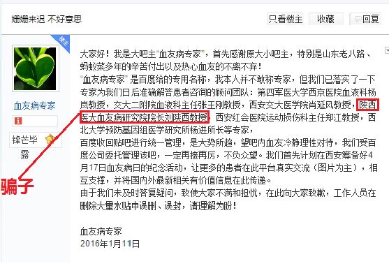 据网友称,ID为“血友病专家”的刘陕西已被媒体曝光过,是"花钱"成为吧主并试图因此获利,可能将损害病友利益。
