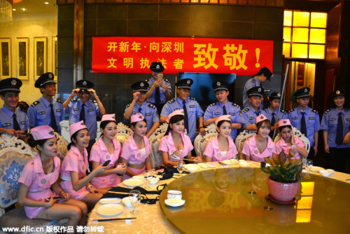 1月11日,一条“性感空姐”服务深圳“城管”的消息在网上疯传,并附有图片。尽管组织者表明充当服务员的“空姐”及赴宴的“城管”均为演员,并声称此举是“向深圳文明执法者致敬”,但“性感空姐”“东莞某豪华酒店”“优质服务”等字眼以及图片中空姐的性感着装都让人怀疑这是一次蓄意的炒作。11日,深圳市城管相关负责人表示,城管已向网警举报该条炒作信息。