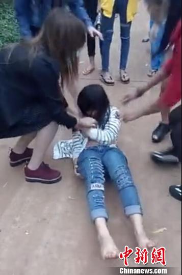 记者从视频中看到,开始是身着红上衣女子、牛仔上衣和黑上衣三名女子对一名身穿花白上衣女孩进行按地殴打,强行扒衣,随后一名身着白衣裙的女子加入,一共四人对受害少女进行殴打、脚踹,嘴里来不断用方言叫嚣着“打死她,太嚣张了”,直到将受害少女的衣服扒光,四人还不解气,还揪住受害少头发进行殴打和脚踹。视频中还出现身着校服的多名女孩在一旁围观。视频长达3分29秒左右。