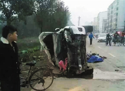 昨日,江西宜春,肇事者驾驶的小轿车。当地发生驾车冲撞行人事件致4死18伤。新华社发
