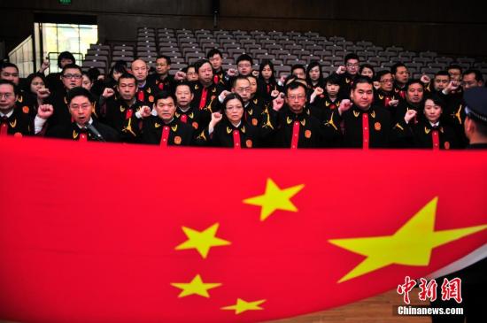 资料图:1月11日,昆明市中级人民法院首批90名入额法官举行集体宣誓,标志着云南省第一批员额制法官正式诞生,司法改革进入新阶段。法官员额制,是按司法规律配置司法人力资源,实现法官队伍正规化专业化职业化,落实司法责任制的重要改革举措。中新社记者 刘冉阳 摄