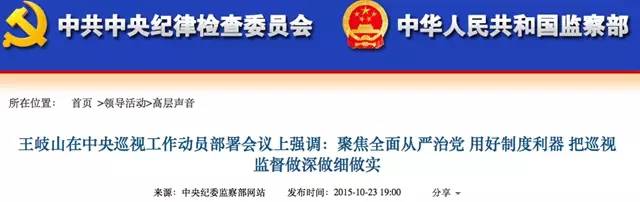 看清楚了吗?去年10月的巡视——聚焦全面从严治党。而本次会议在这一“聚焦”之前,强调了一个新要求——突出坚持党的领导。