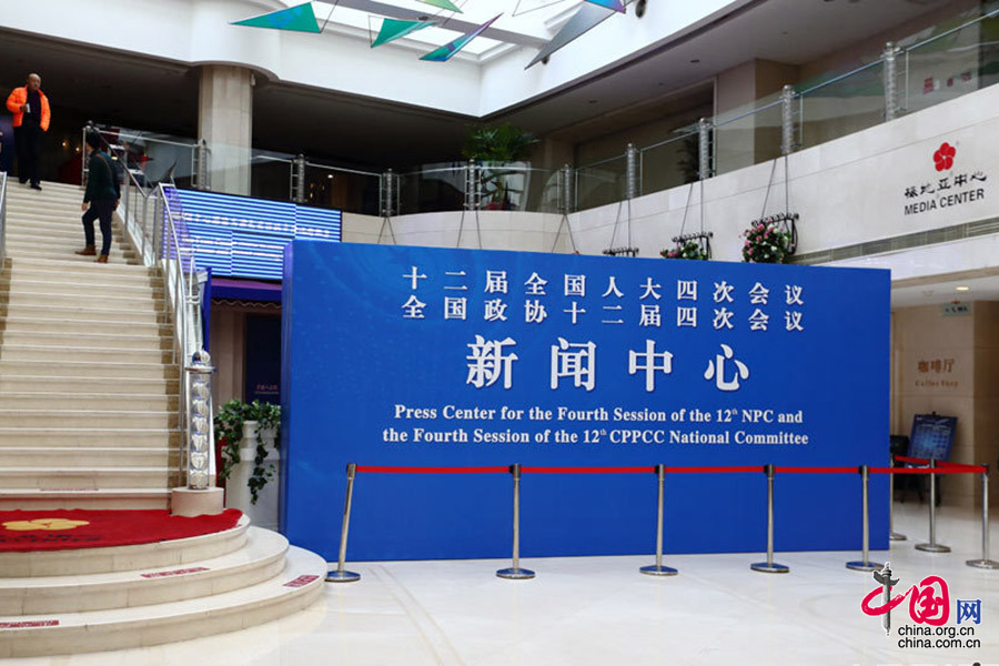 2016年2月27日,北京,位于梅地亚中心的2016全国两会新闻中心对记者开放。
