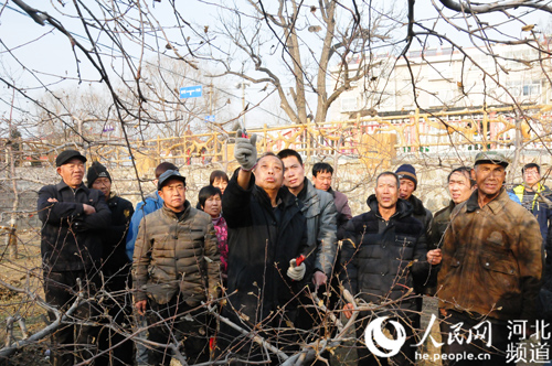 图为2016年1月27日,李保国为果农讲解果树冬季修剪技术。张梦琪 摄