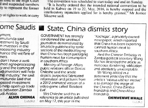 当天,赞比亚另外一家私营主流报纸《每日国家报》也对此做了报道。
