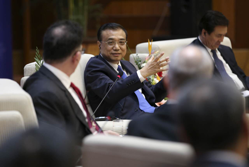 国务院总理李克强24日下午在贵阳花溪迎宾馆同出席中国大数据产业峰会暨中国电子商务创新发展峰会的国内外业界人士举行对话会。
