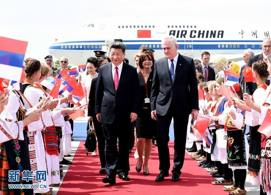 6月17日,国家主席习近平乘专机抵达贝尔格莱德,开始对塞尔维亚共和国进行国事访问。习近平和夫人彭丽媛在机场受到塞尔维亚总统尼科利奇夫妇的热情迎接。 新华社记者 饶爱民 摄 图片来源:新华网