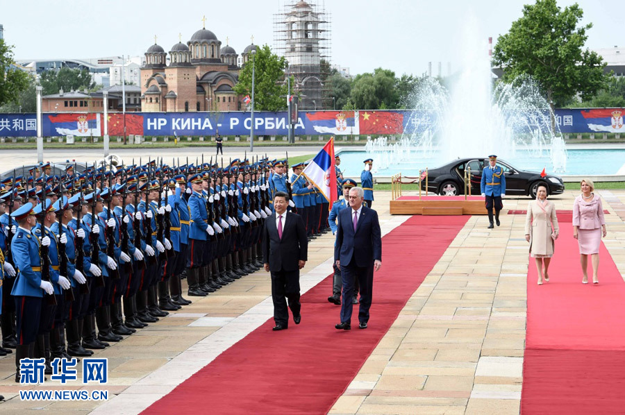 6月18日,国家主席习近平出席塞尔维亚总统尼科利奇在贝尔格莱德举行的隆重欢迎仪式。 新华社记者饶爱民摄