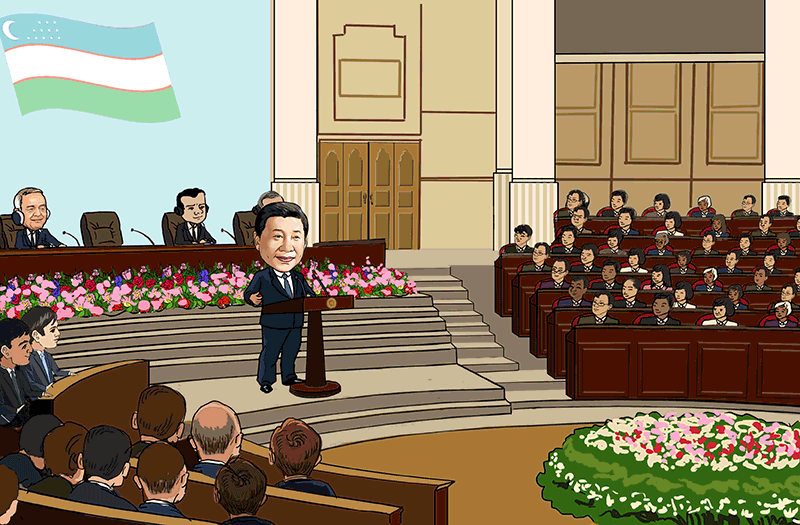 6月21日,国家主席习近平应邀开始对乌兹别克斯坦共和国进行国事访问并出席在塔什干举行的上海合作组织成员国元首理事会第十六次会议。当天,习主席在米尔济约耶夫总理的陪同下参观了有“丝绸之路活化石”之称的历史文化名城布哈拉。22日,卡里莫夫总统举行隆重仪式欢迎习主席,两位领导人举行正式会谈,一致决定建立中乌全面战略伙伴关系。两位领导人还见证了外交、经贸等领域多项合作文件的签署。