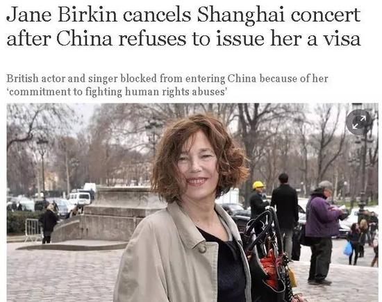 昨天,英国《卫报》等媒体宣称,英国女艺人Jane Birkin被中国拒签,只得取消参加原定于7月9日在上海举行的纪念其亡夫、法国传奇歌星赛日·甘斯布(Serge Gainsbourg)的《甘斯布交响乐》音乐会。