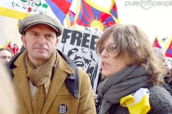 而在这群阻拦和抗议的藏·独分子中,就有身披藏·独旗帜的Jane Birkin。