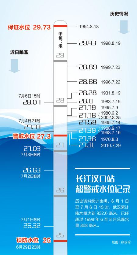6月30日以来,湖北、安徽、江苏等长江中下游地区遭遇持续强降雨,多地降雨量突破历史极值,河流水位明显上涨,到7月6日白天,长江中下游地区的降雨已明显减弱,但6日至8日,长江上游部分地区(四川盆地中西部)将出现持续性强降雨。中国气象局气象专家告诉记者,上游地区的强降雨将与之前下游降雨产生叠加效应,长江防汛形势依然严峻。