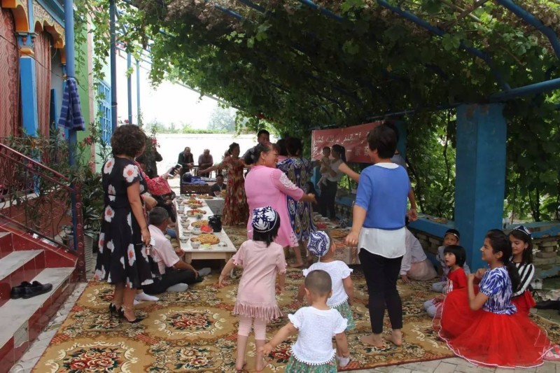 塔城地区财政局住额敏县克孜勒黑亚村工作组与村民共度肉孜节。