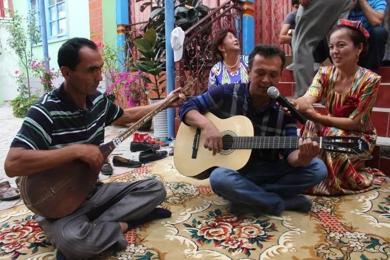阿合奇县吐逊那力一家人欢聚一堂,弹库木孜唱玛纳斯欢度肉孜节。