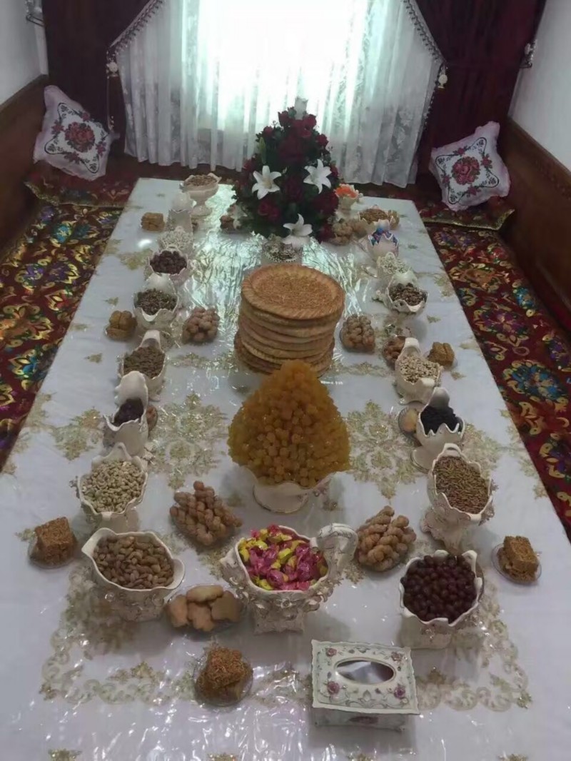 塔城市市民叶茂盛一家为欢度肉孜节准备了一桌丰盛的晚餐。