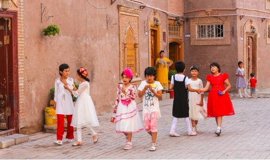 老城里的维吾尔族群众都穿上新衣服,迎接肉孜节的到来。