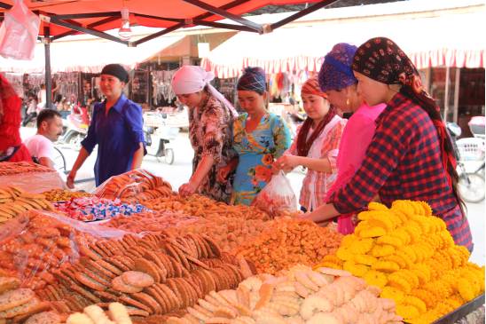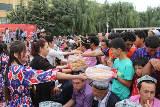 墨玉县,大家共品特色美食,共庆肉孜节。