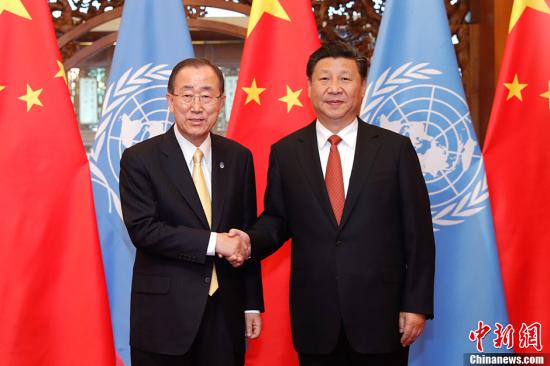 习近平欢迎潘基文出席9月二十国集团领导人杭州峰会。习近平指出,中方高度重视并同联合国在发展和气候变化等问题上开展了密切合作,取得了重要进展。中方推动二十国集团领导人峰会聚焦发展问题,推动共建“一带一路”,就是要助力2030年可持续发展议程。中方倡导设立亚投行,并愿同联合国、世界银行等国际组织加强合作,就是要同世界各国分享中国的发展机遇。