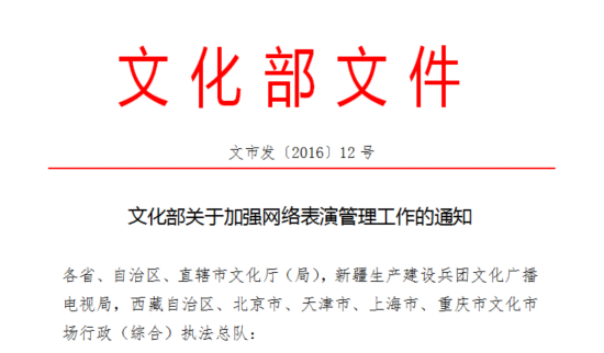 文化部印发《关于加强网络表演管理工作的通知》。资料截图