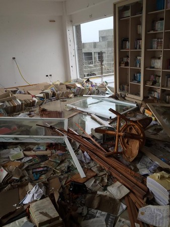 据台湾东森新闻报道,强台风“尼伯特”清晨从台东太麻里登陆台湾,对台东地区造成严重损害。台东大学教授魏俊华上午分享家里的受损情形:家中的落地窗连框带玻璃整片被掀开,3楼的书柜直接被吹飞到1楼,他的教科书和学生的毕业论文现在都在稻田里“泡汤”:“到底是台风还是地震?真是欲哭无泪。”
