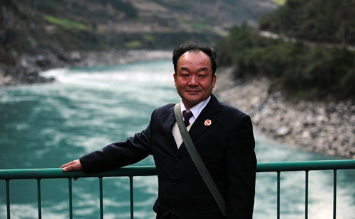 站在独龙江桥上的江德华。 资料图