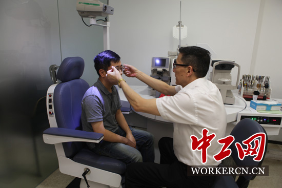 蓝金康正在为患者验光。中工网记者朱晶晶摄