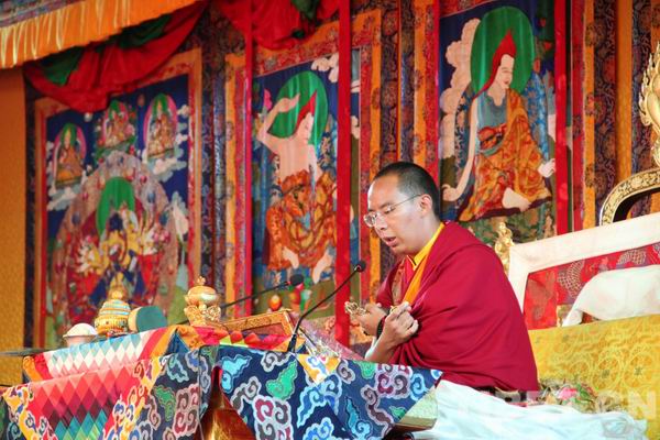 △班禅进行时轮金刚灌顶,一边运用法器一边讲经说法