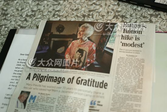 美国费城询问报关于王成汉与玛丽的报道,标题名为感恩之旅。(亓翔 摄)