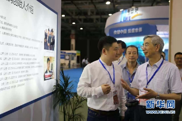 三维码的兴起,也引起不少专家的关注。图为中国工程院院士倪光南在某展会上与陈绳旭互动。