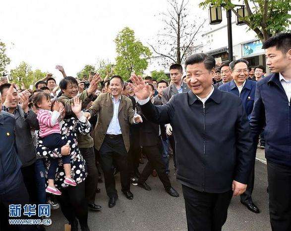 2016年4月24日至27日,中共中央总书记、国家主席、中央军委主席习近平在安徽调研。这是4月25日下午,习近平在滁州市凤阳县小岗村向村民们问好。新华社记者李涛摄