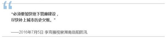 7月5日,李克强视察湖南岳阳防汛。得知白石岭城中村内涝严重,积水最深时达4米多,总理一下火车就直奔这里。当听到200余名居民已全部转移安置,他甚感欣慰,转而说,内涝凸显了城市建设中突出的短板,必须要加快地下管廊建设,尽快补上城市历史欠账。