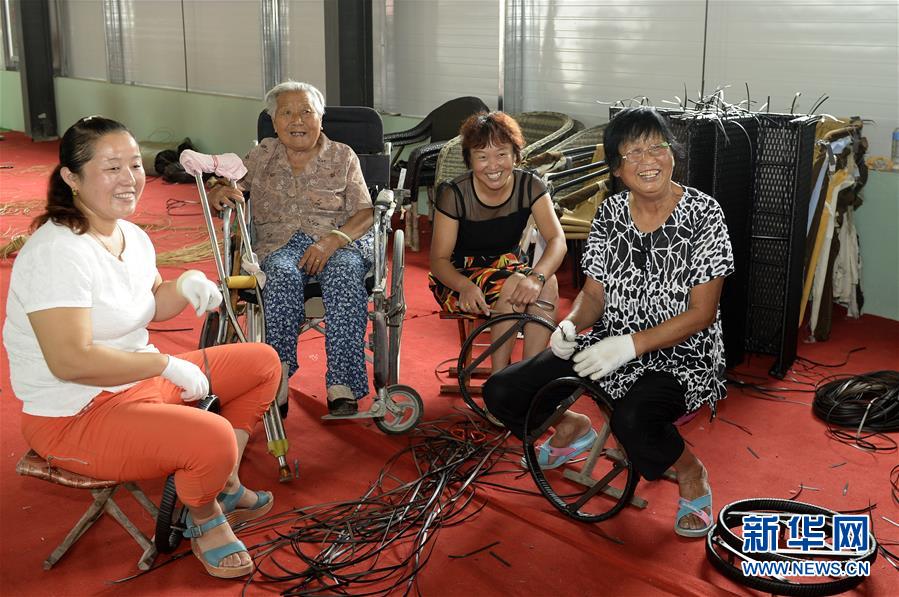 台前县是国家级贫困县,外出务工是重要收入来源,但为了照顾老人和孩子,许多农村妇女不得不留在家里。为此,台前县探索通过政府投资建设扶贫就业基地,吸引企业把车间办到村里,让农民在家门口就业,实现了挣钱、持家两不误。新华社记者冯大鹏摄