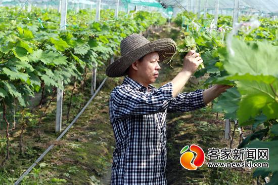 安远农民梅林山先前靠伐木种菇为生,现在他放下柴刀转投生态农业。图为工人在梅林山的葡萄园里给葡萄剪枝。