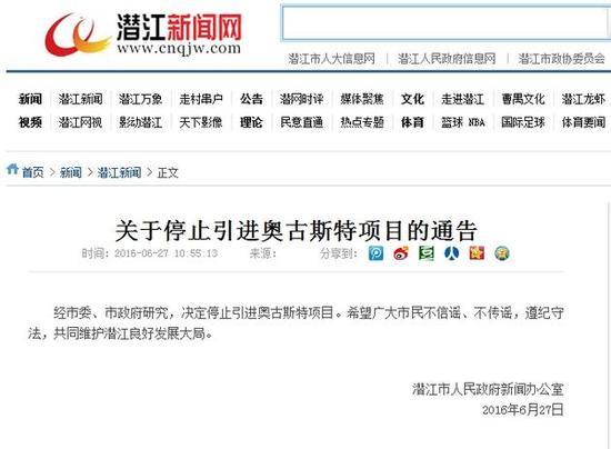 2016年6月27日上午,潜江市部分人员违反国家法律法规,在未向有关部门提出申请并获得许可的情况下,非法采取利用微信群传播请愿书,擅自上街游行,聚集请愿等方式,要求政府停止引进奥古斯特项目,扰乱社会公共秩序,造成了很坏的社会影响。